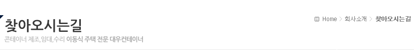 상호 : 대우콘테이너 주식회사 | 대표 : 허호경 | 사업자등록번호 : 129-86-58879 | 주소 : 경기도 여주시 흥천면 흥천로 308ㅡ120(귀백리58ㅡ7번지)