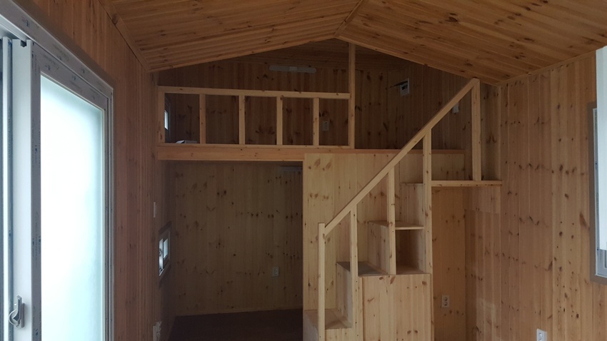 기존의 보편적인 방식은 아랫쪽에 주방과 화장실이 있고 그위로 낮은 다락방이 있습니다.